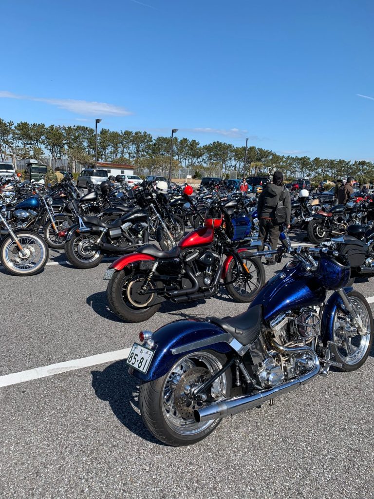 私は、ゆっくり9:30くらいに出発して、フリーランには参加しませんでしたが富津公園が近づくにつれて、ハーレー乗りが多くなり、4~5台のハーレーと流しながら会場に入りました。駐車場は100台以上集まっていたかなぁ。すごい台数でした。
